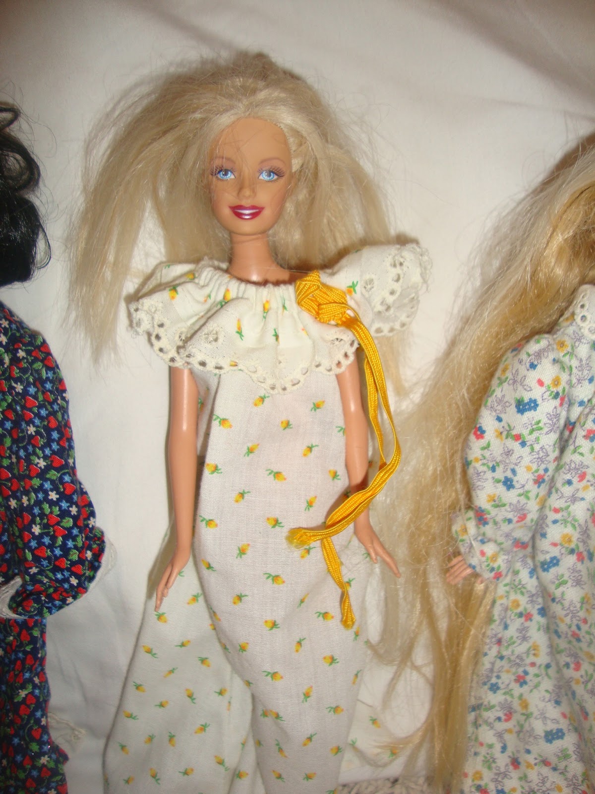 The clothes are starting to show a little wear (not surprising as some are close to 30 years old!) and I wanted to be sure to record these beautiful dresses and Memommy's amazing talent.